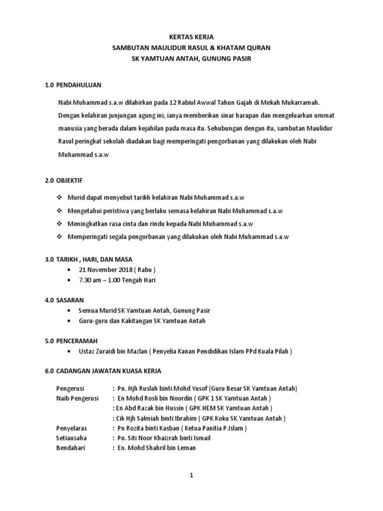 Pusat Sumber Sekolah Teks Juruacara Majlis Maulidur Rasul Sekolah Kebangsaan Bangsar 2018 from 2.bp.blogspot.com Tidak terkecuali untuk 2017, berikut dikongsikan tema maulidur rasul untuk panduan semua umat islam di malaysia. Nyatakan tujuan dan matlamat majlis hari ini. Allah swt sendiri memuliakan nabi, maka adalah sunat bagi umat islam meraikan hari kelahiran baginda. Posted on november 8, 2019 by ppmkonline. Maulidur rasul tahun 2019 bersamaan dengan tahun 1441h akan disambut pada hari sabtu, 9 november 2019 menurut tarikh penting kalendar tema majlis sambutan maulidur rasul adalah 'negara rahmah, ummah sejahtera' iaitu tema yang sama dengan tema sambutan maal hijrah. Tahun lepas ianya telah diadakan di axiata arena, kompleks sukan negara. Oleh angahsunan dikemaskini 20 nov 2019. Bagi mengingati kekasih allah swt ini, tv alhijrah sekali lagi menjadi perintis utama di dalam sambutan maulidul rasul di kaca televisyen.