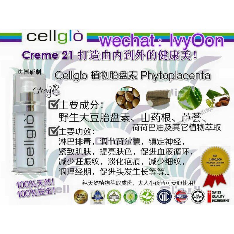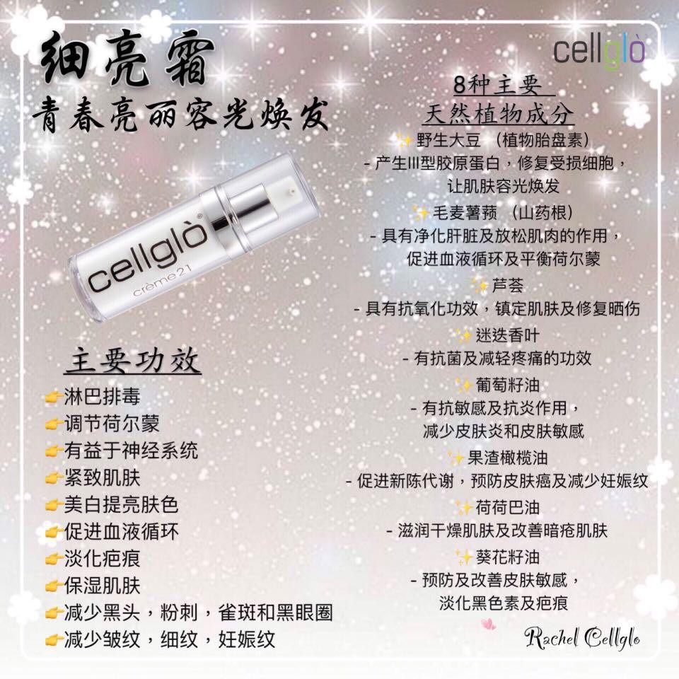 Cellglò crème 21 main ingredient is phyto placenta from wild soy bean. I've never been into any skincare for 29 years.well.there is a few reasons why i don't apply any skincare, pricey. Cellglo creme 21 cellglo sunblock 原装正品. See more of cellglo creme21 general agent 21细亮霜槟城区代理 on facebook. Transdermal absorption from cellglò crème 21.