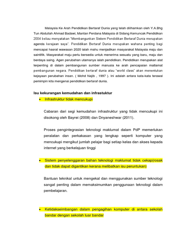 Jadi saya pikir kita harus berpikir jernih dalam melihat. Perkembangan ekonomi di bandar menyebabkan penyediaan kemudahan infrastruktur yang lebih baik dilaksanakan. Tetapi adakah ini benar ? Melalui pencarian dalam internet, kami dapat mengenalpasti masalah tentang kemudahan infrastruktur di institusi perguruan. Namun di sisi lain, infrastruktur yang ada malah kurang memadai.