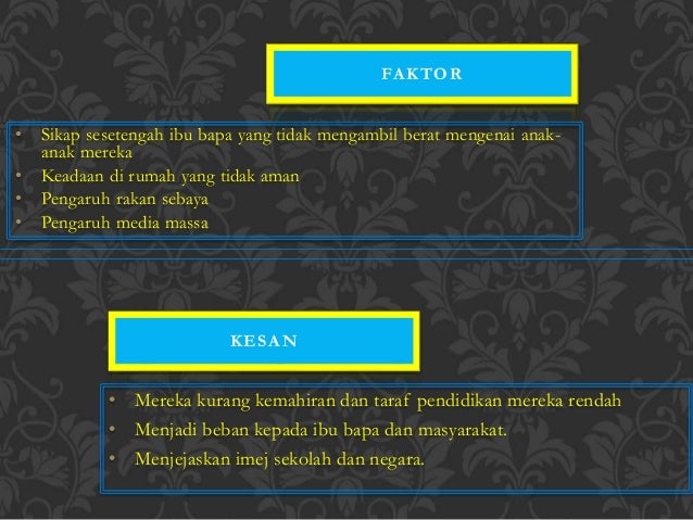 Masalah Remaja: Gejala Ponteng from lh5.googleusercontent.com Disebabkan faktor pergolakan keluarga di rumah, remaja cenderung untuk berjumpa rakan sebaya bagi mencari ketenangan dan kegembiraan. Masalah gejala sosial di dalam kalangan remaja pada hari ini akan memberikan kesan dan impak yang begitu besar dalam diri individu, masyarakat dan negara. Ibu dan bapa serta masyarakat seharusnya memainkan peranan supaya golongan remaja tidak mudah terpengaruh dengan rakan sebaya dan juga media sosial hari ini. Sehingga, dalam pembuatan kebijakan pengaruh atau dampak yang ditimbulkan baik itu positif maupun negatif. Sememangnya rakan sebaya merupakan insan yang rapat dalam hidup seseorang remaja selain ahli keluarga. Pengaruh rakan sebaya rakan sebaya dan keluarga merupakan kumpulan yang paling dekat dan paling penting dalam kehidupan seseorang remaja. Gejala sosial merupakan masalah yang sering dibicarakan dalam komuniti hari ini. Jika ia tidak dibendung dengan segera, ditakuti ia akan.